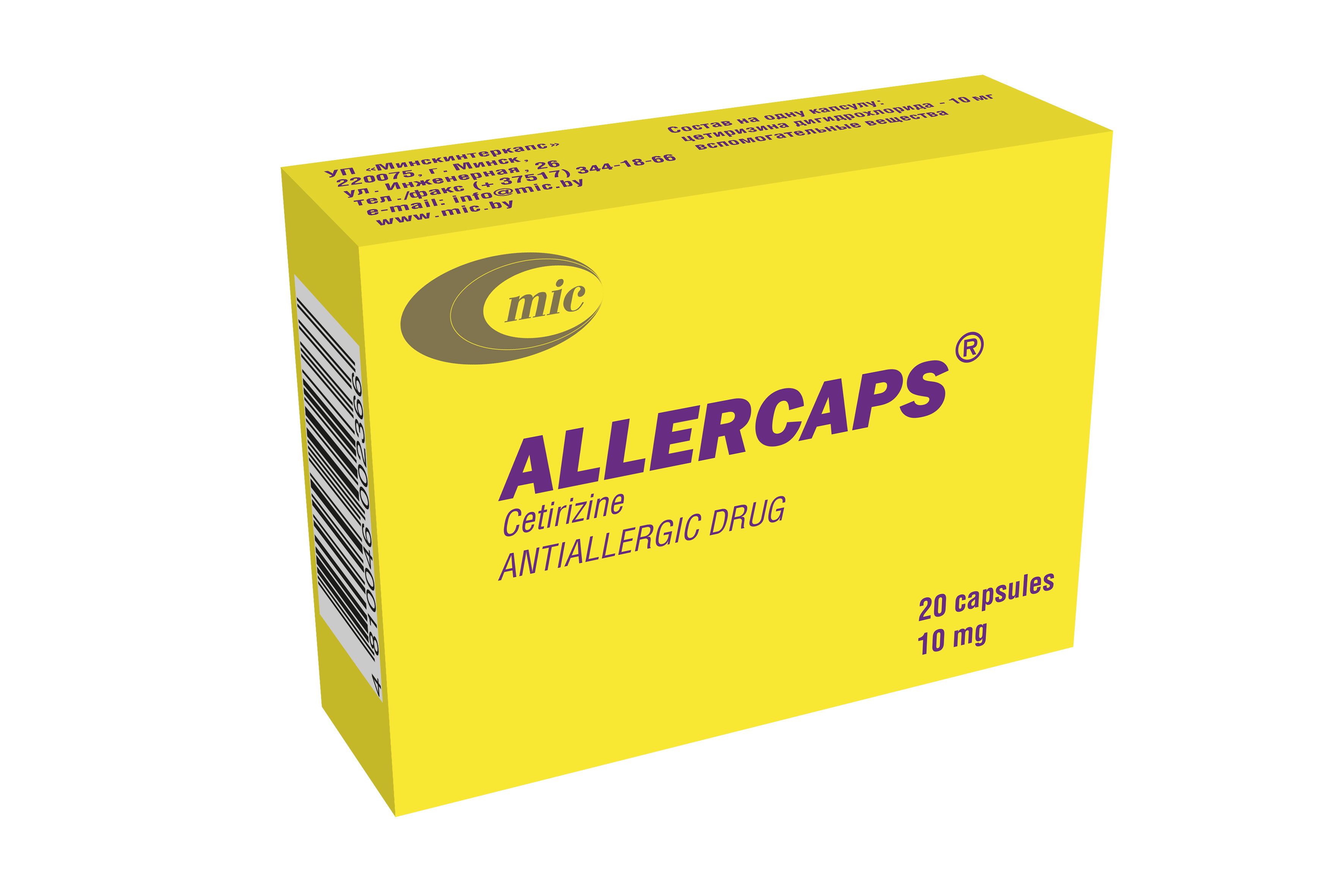 Cetirizine dihydrochloride - 5 mg or 10 mg. Package 20 capsules.